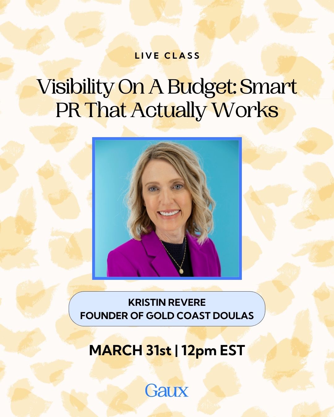 Gaux Visibility on a Budget: Smart PR that Actually Works March 31, 2026 at 12pm EST JOIN HERE